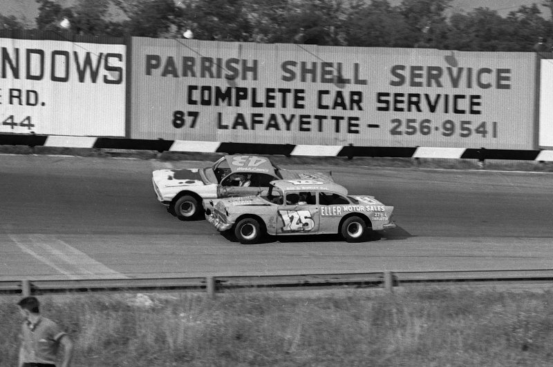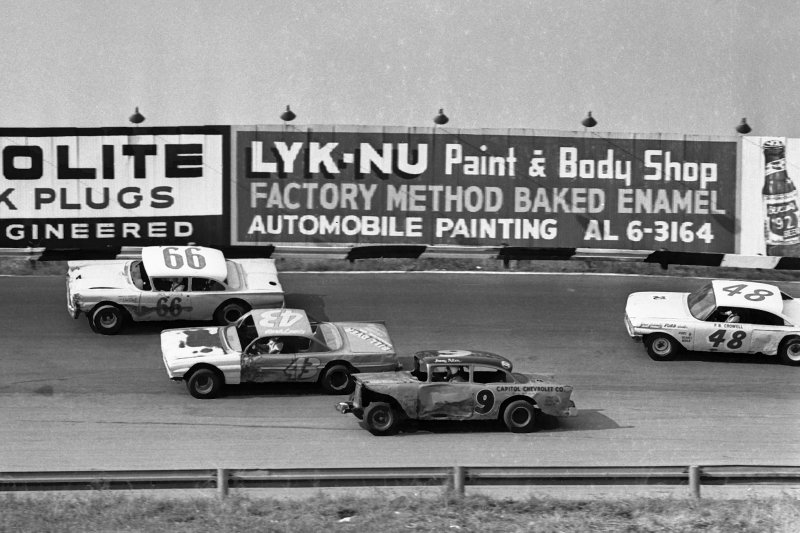with Herb Lewis leading the first 9 laps. Lewis was sidelined when the coil wire came off, and Coo Coo Marlin took the lead. Walter Wallace already had track time in his Ford after running at Birnimgham before the Nashville