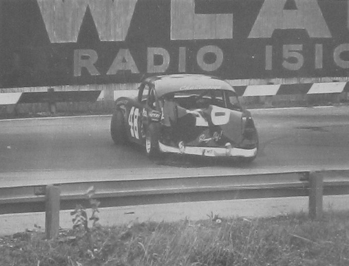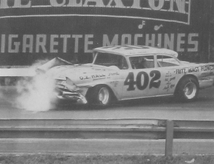 accident as Herb Lewis went over the turn two wall in his Pontiac. Lewis was dazed and suffered a broken tailbone that sidelined him almost a month. Luckily, no spectators were injured.