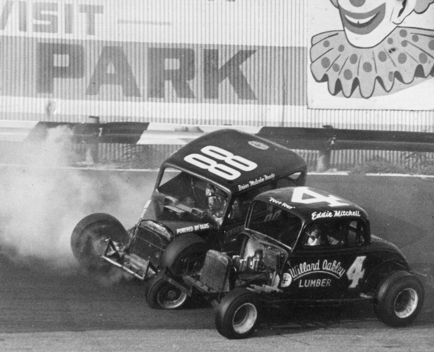 This story involves a wicked looking crash Eddie had in his familiar “Poor Four” Modified Special during one of the races held on the half-mile in 1963.