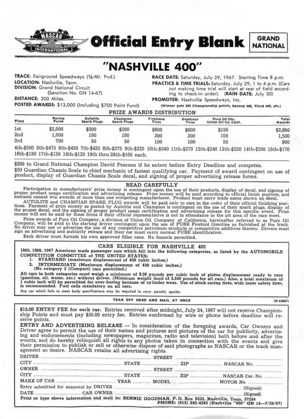 Here are two entry blanks for the Grand National (Cup) 400 / 420