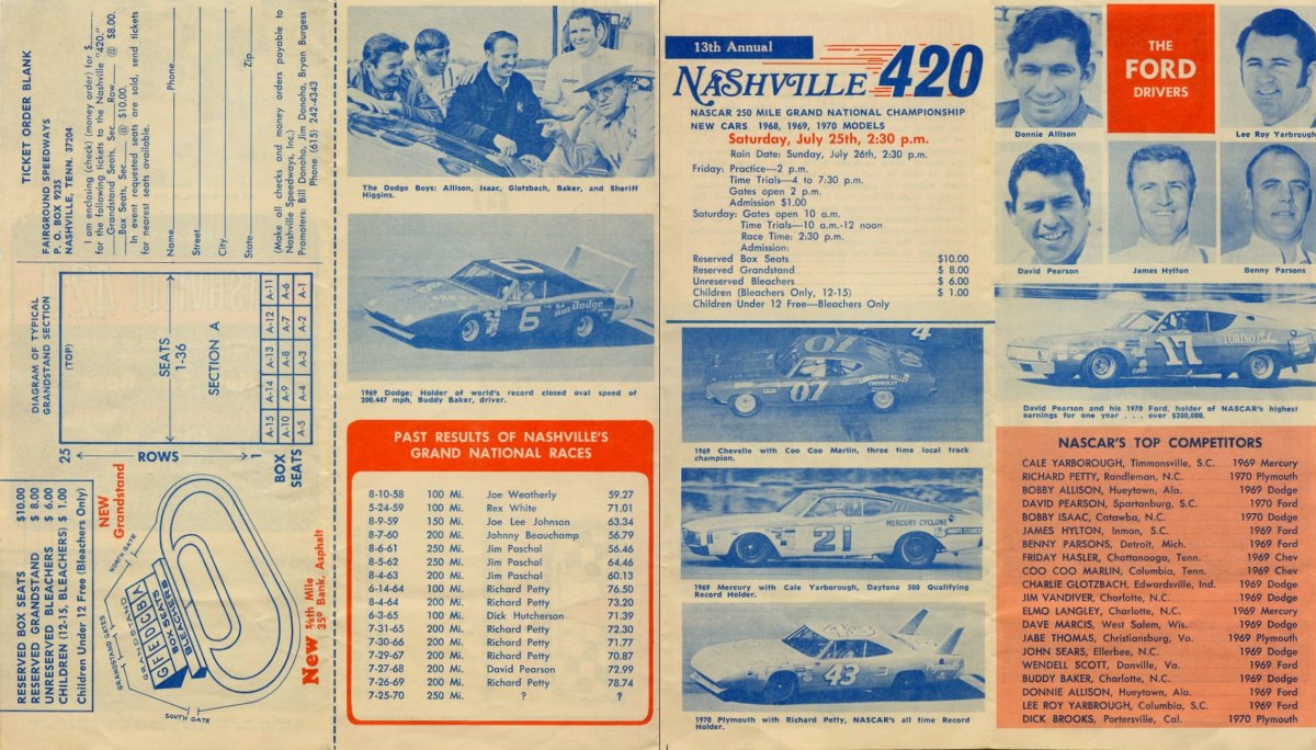 Here's the one for the first Nashville 420 held on the high banked track in 1970:
