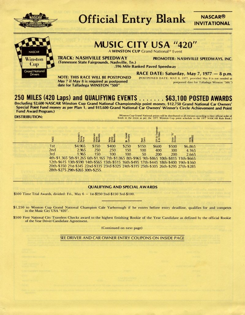 year, and the Music City 420 was added to the 1973 schedule. That event stayed on the