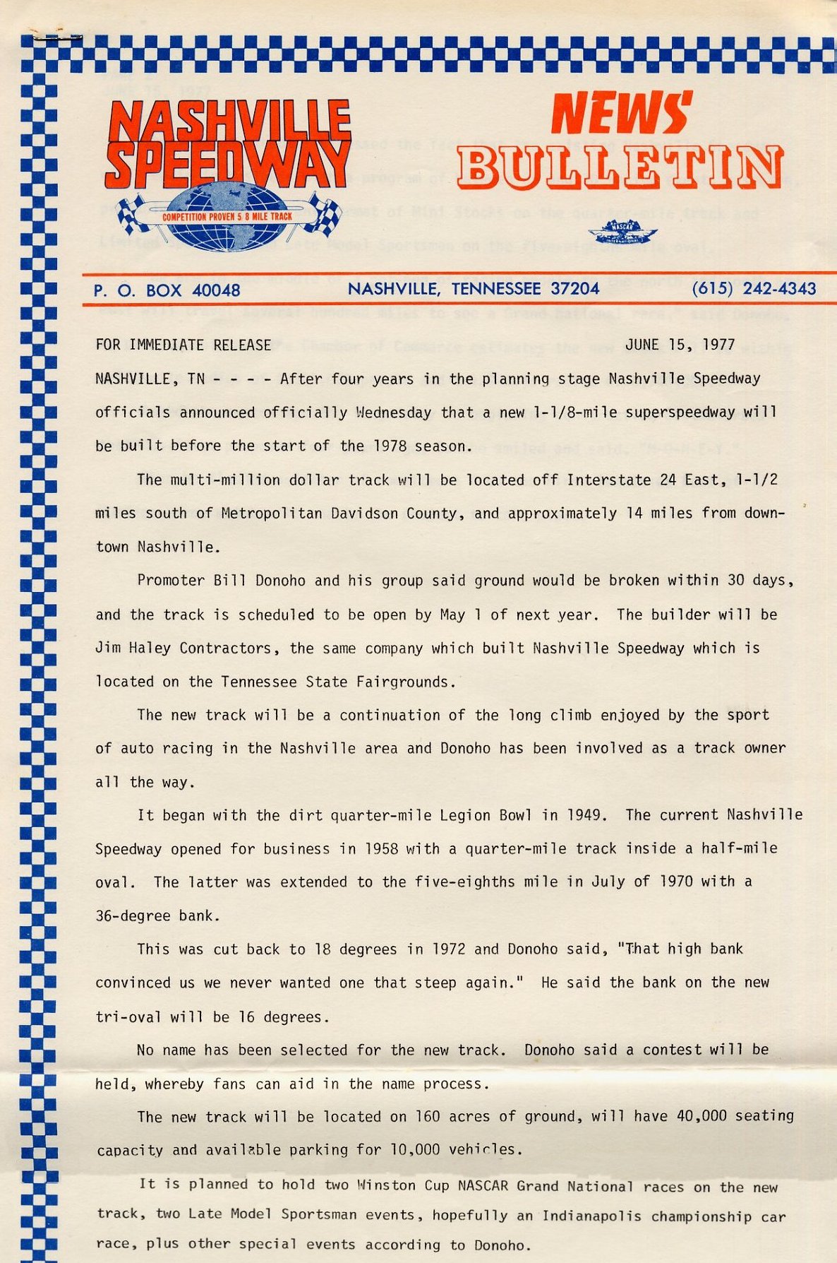 old school racers in Nashville were skeptical to say the least. This 1977 announcement