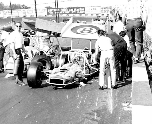 Jack Marlin (#1), Dick Gaines (#70), and an unidentified car crash in