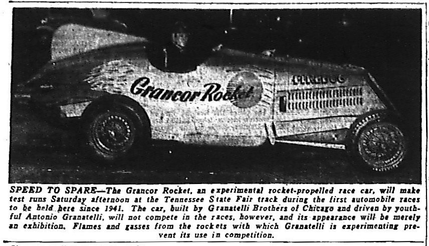 was the story about the race, the record run, and a photo of Antonio Granatelli in his rocket car with the packed grandstand in the background.